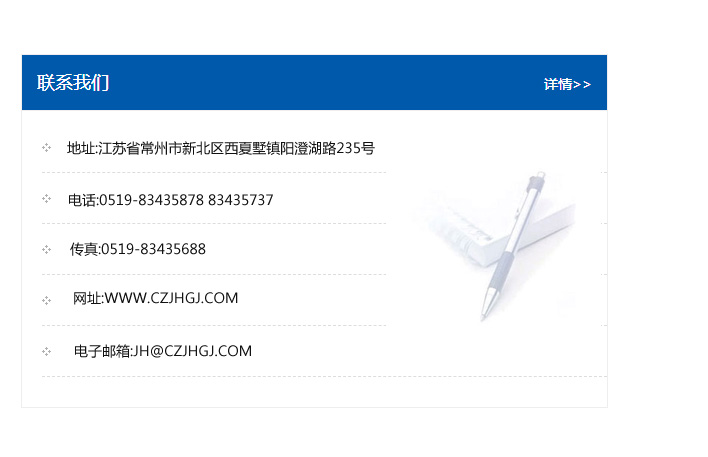傳真:0519-83435688    郵編:213135    網址:WWW.czjhgj_com.mznhc.com    電子郵箱:JH@czjhgj_com.mznhc.com